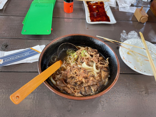 ランチは、肉うどんと焼き鳥4本を食す。最初の2本が塩ではなくたれであったのが残念だった。塩が旨いのに。。。