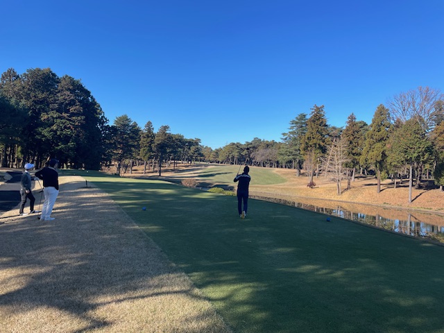 さて、プレータイムとなりました。インから。今日はAグリーン使用です。日本ミッドアマに出るようなK.Kさんと大谷副支配人が一緒なので黒ティから参ります。キャディさんは前回付いてくれたTさんです。
