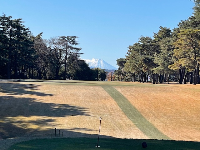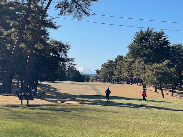 13番406yミドルは富士山が見えるナイスホール。ドライバーは完璧。残り185yからuが完璧球。5mに2オン。残念パー。難しいアプを綺麗に寄せてK.Kさんもパー。