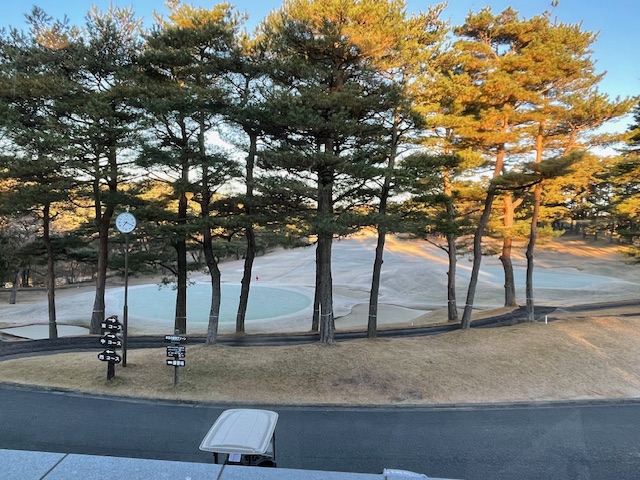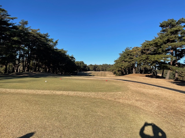 その後、中コースから。今日はLグリーンです。青ティで進行します。今日はS.A資格審査委員長と廻ります。