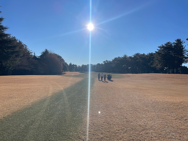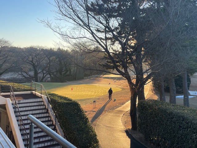 1番ミドルは、ドライバー、PWで8mに2オン。も、打ち過ぎて3パンチボギー。ガクッ。カラーからナイスパター転がしで会員のH.Wさんがパー発進。