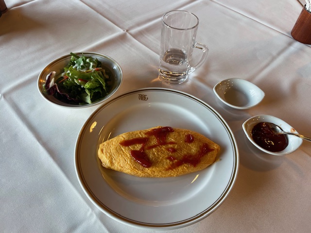着替えて、レストランへ。7時半のオープンまでしばし待機。そして、時間になり、今日は会員のOさんからの「オムレツね!」の声に、自分もハム入りオムレツをオーダーしてみた。こちらもなかなかグーです。で、お決まりのさつま汁で〆ます。