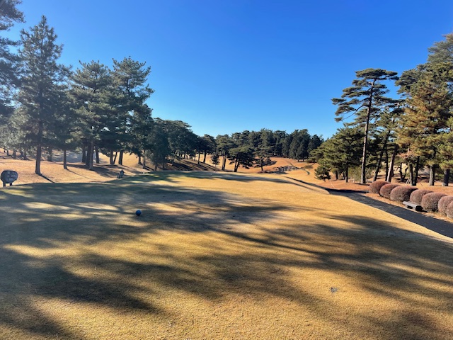 17番540yロングは、ドライバーは左ラフへ。3u、uで左へ外れる。寄らず入らず。奥からナイス寄せのH.Oさんが鉄パーベスト。