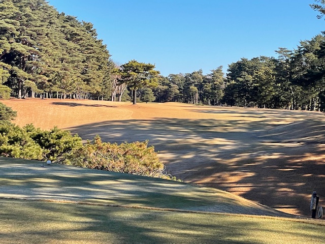13番523yロングは、ドライバーは左ラフへ。小さな松で打てず。チョン出し。5w、52度で3mに4オン。沈めてナイス銅竿パー。見事なアプからH.Oさんが鉄パー。