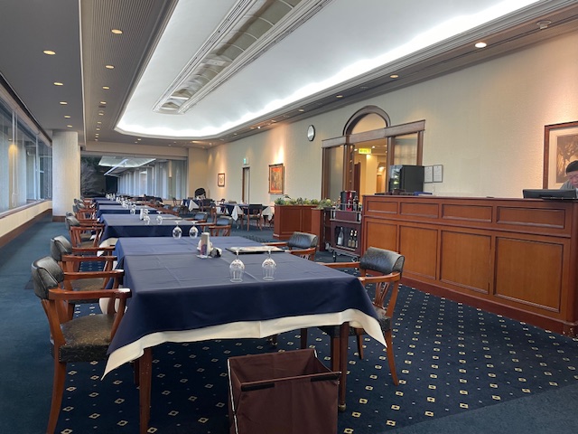 6時過ぎ、到着。すでにやってるのがありがたいね。6時15分、着替えてレストランへ。