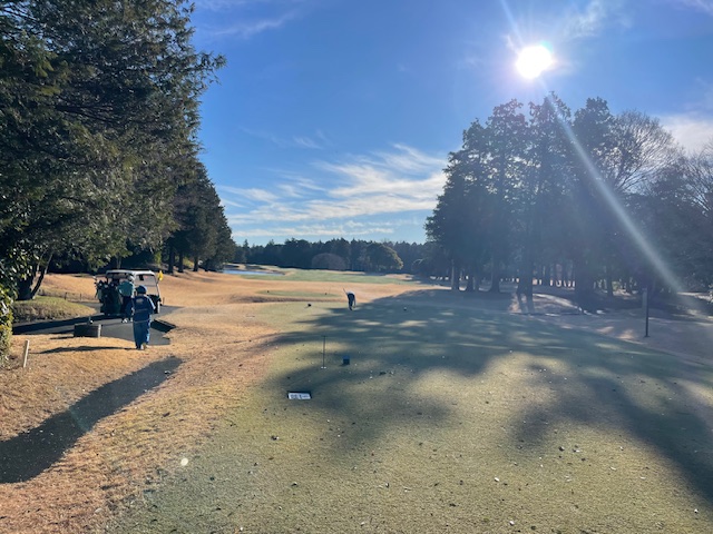 18番380yミドルは、ドライバーは右へ。チョン出し。3オンはボギー。