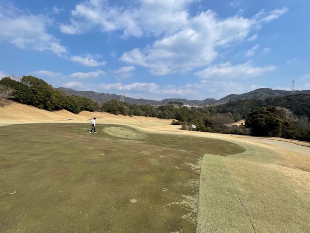 2番ショートは、6アイアンで打つも竜巻球でバンカーイン。まずまずでしたが、パターが入らず。ナイスアプから縁のS.Fさんがパー奪取。