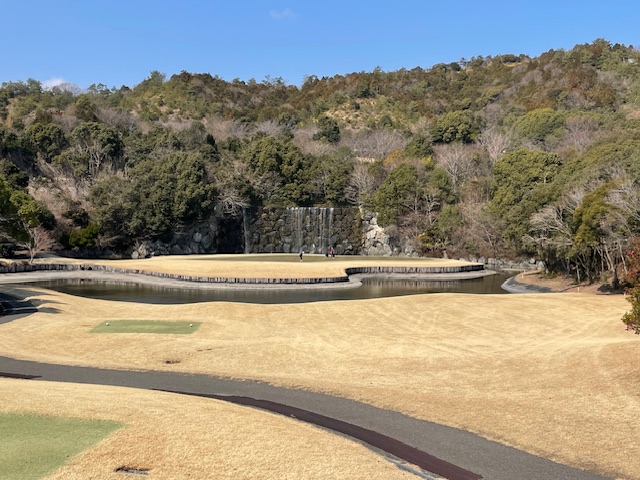 7番ロングは、ドライバーは完璧。池手前に7アイアンでレイアップ。PWでの3打目がショート。1.5mを外してボギー。もう嫌!