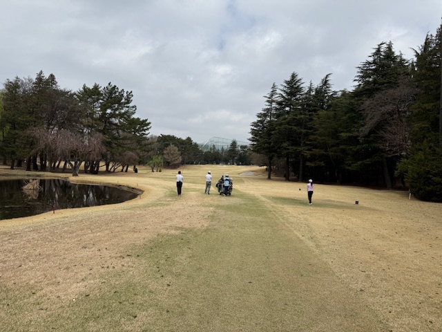 12番ショートは、6アイアンで打つもチョロ。ボギー。見事な1オンからK.Sさんが無難にパー。