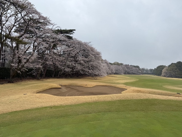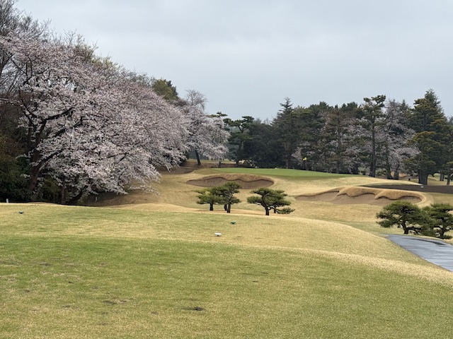 17番これまた桜が超最高のミドルは、ドライバーはセンターへ。セカンドをuで打つも右へ。3打目が乗らず。またまたダボ。アプが全くあきませんの日でしたね。