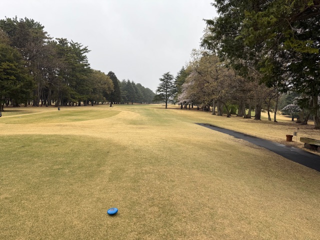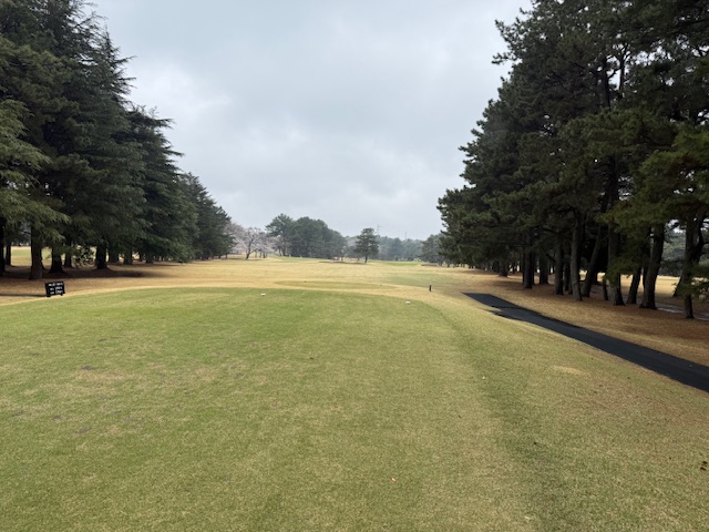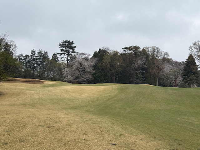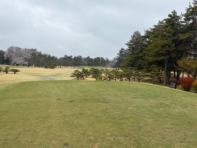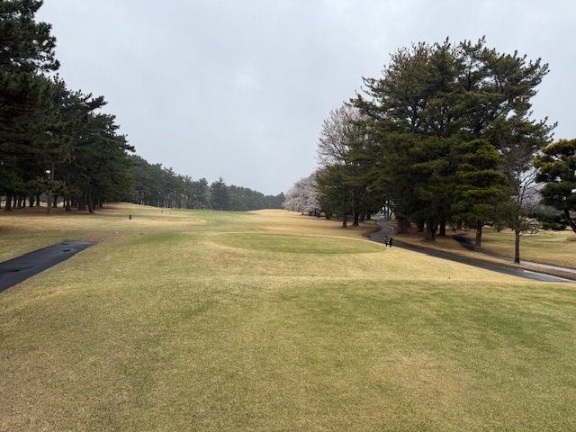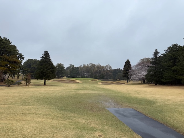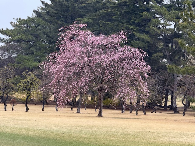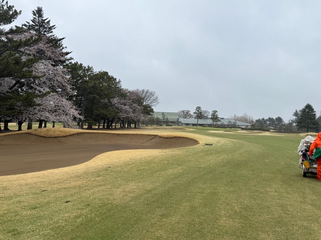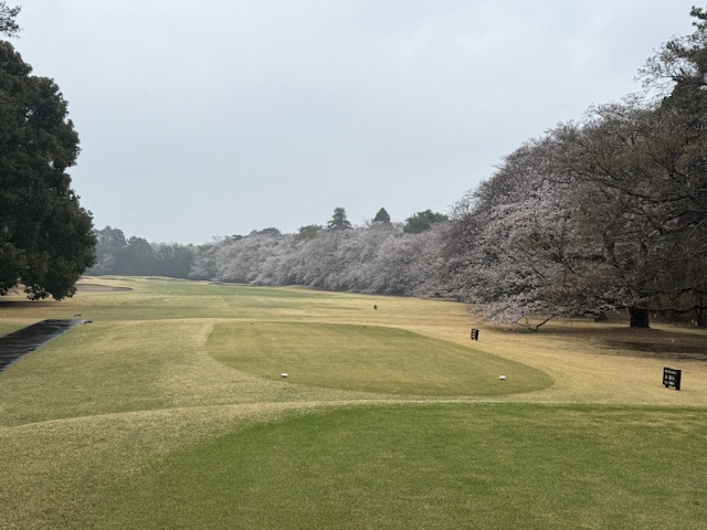 8時50分、アウト1番からティオフです。青ティで進行します。雨でも桜は最高です。