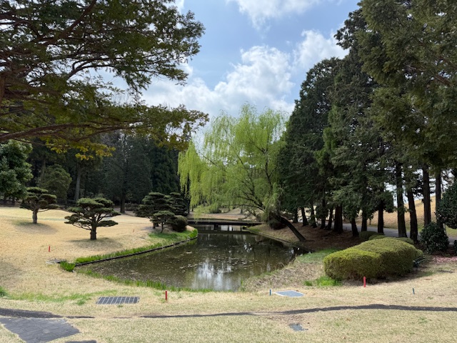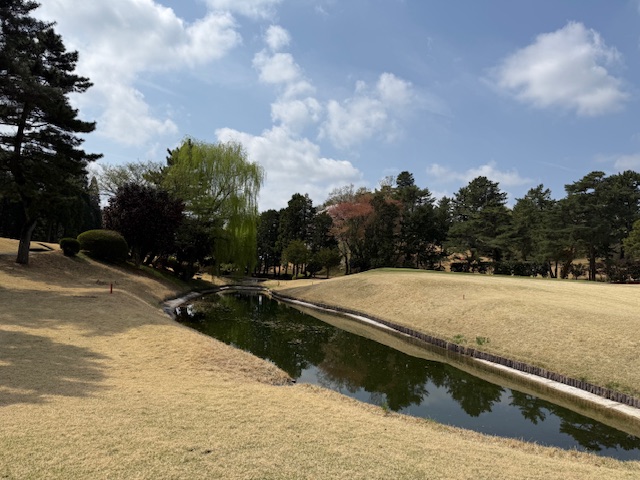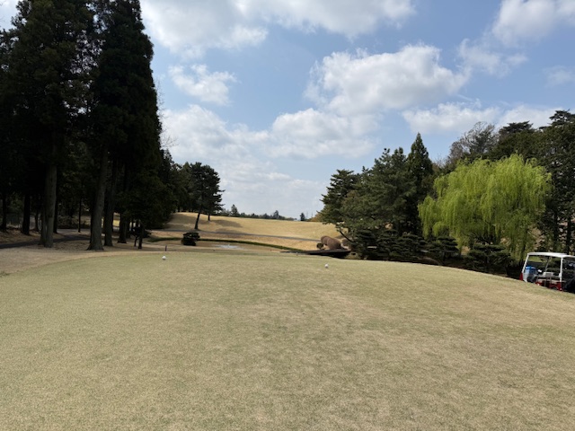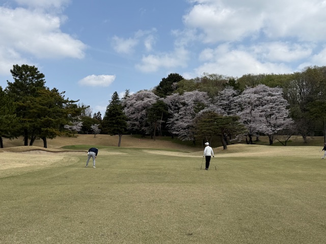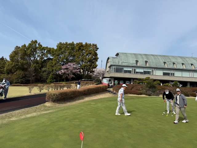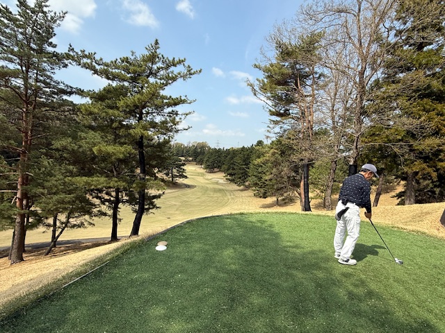 その後、パターを転がして、アウトから。今日は白ティでグリーンはベントです。今日は西北のK.Hさん、新宿のS.Nさん、ワセダのK.Iさんとのペアリングです。スコアカードがなくなってしまい、同伴者のスコアに失礼があったらご勘弁を