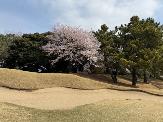7番左ドッグのミドルは、ドライバーはショボ。7アイアンでのセカンドがバンカーイン。出ただけ。4オンのダボ。ガクッ。