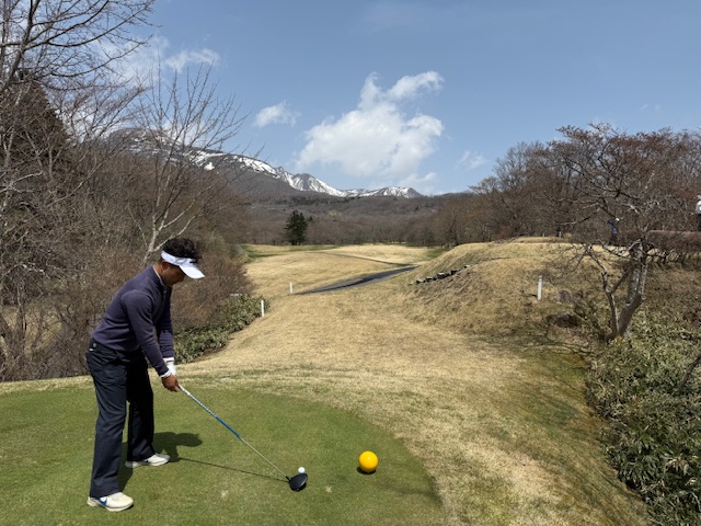 朝からグリーンジャケットを聴きながら温泉を十二分に堪能し、ハムエッグ和膳を食し、アウトから。今日も黄色ティです。