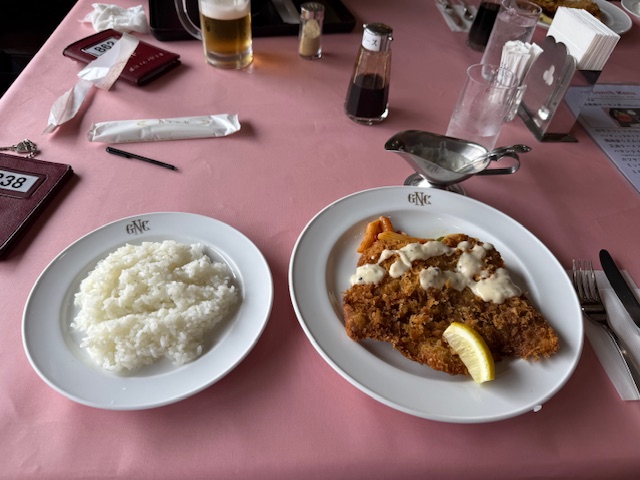 ランチは仔牛のカツレツとミネストローネを食す。旨い!