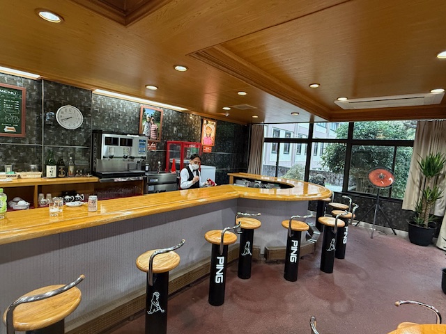 2番346y左ドッグのミドルは、ドライバーは完璧。が、残り126y追い風PWで打つもどダフリ。最近、強振するとダフる。3打目も乗らず。下手過ぎる。やっとのボギー。縁の会員さんS.Fさんが2オンしながら残念ボギー。