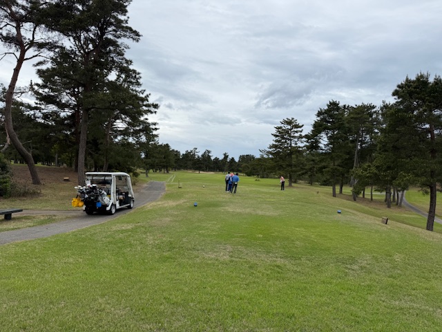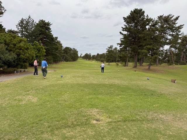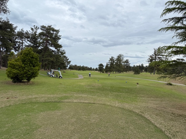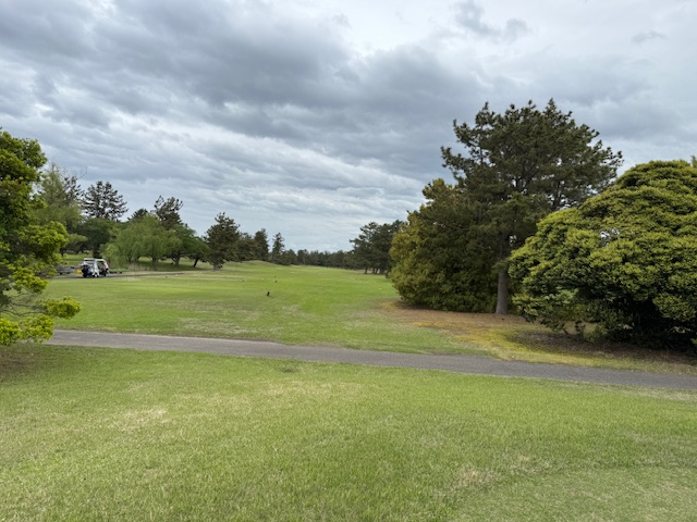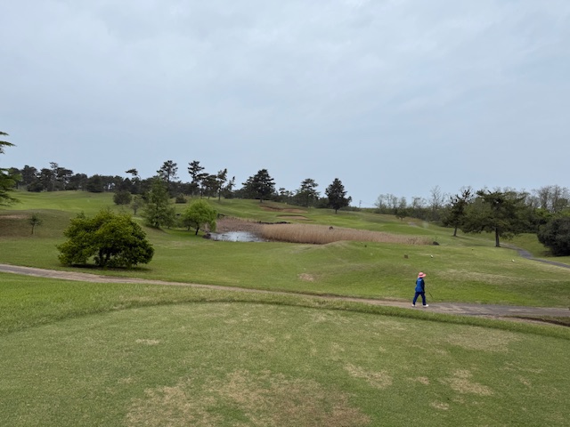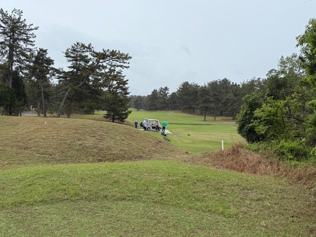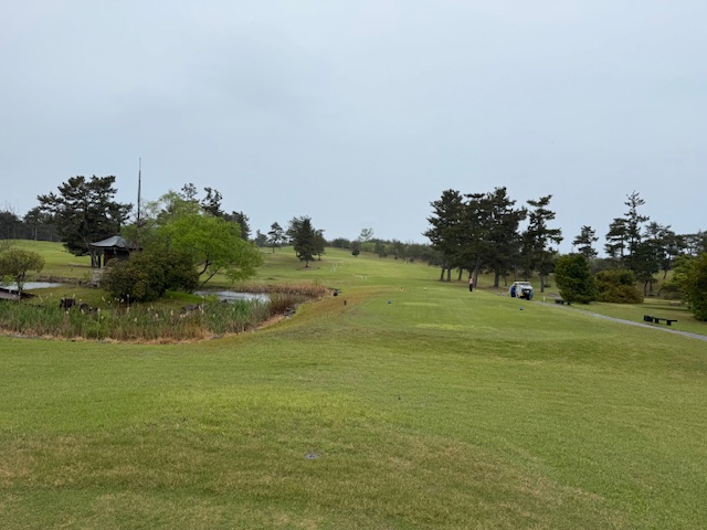 14番345y左ドッグのミドルは、ドライバーはまずまず。8アイアンで打つも木に掠りショート。も、ナイスアプでパー。見事なアプで縁の会員さんS.Mさんが無難にパー。