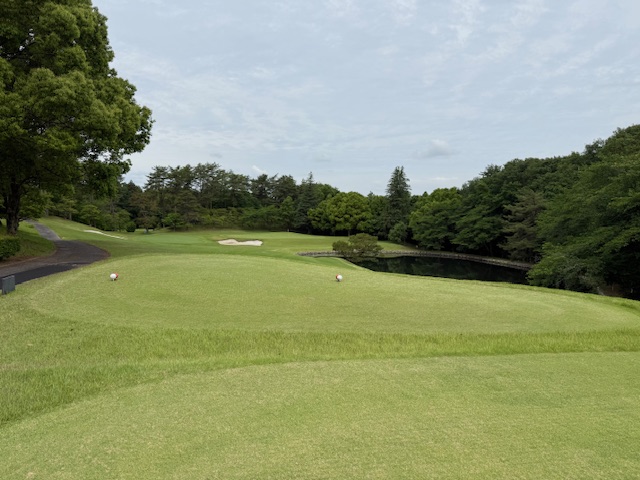 9番518yロングは、ドライバーは左傾斜地。3uで打つもショボ球。今度は3打目をuで打つもお池にジャブン。ドロップして5オン。沈めてなんとかボギー。