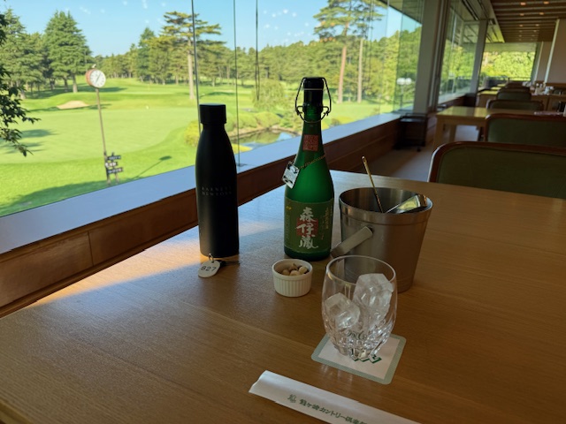 9番ミドルは、ドライバーはヘナチョコ球。ここで水筒の水と氷を頭からかぶる。3uで花道へ。2.5mに3オンしたがパターが入らず。