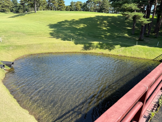 14番ミドルは、右ラフから6アイアンで打つもどダフリ。寄らず入らず。見事なアプからK.Tさんがパーゲット。