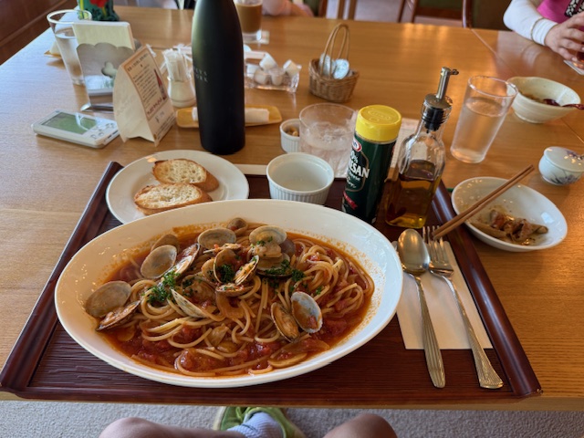 ランチは、昨日に引き続きパスタ(ボンゴレロッソ)に。今日は大盛りにしてみた。ナイス!