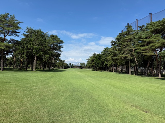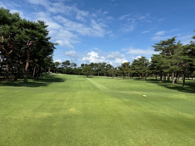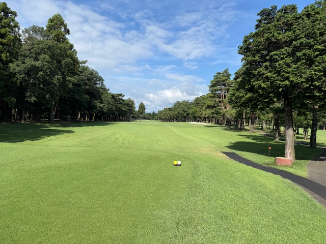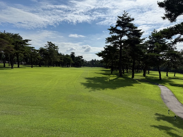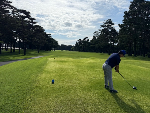7時39分、アウトから。今日はバミューダグリーンでティは青から。