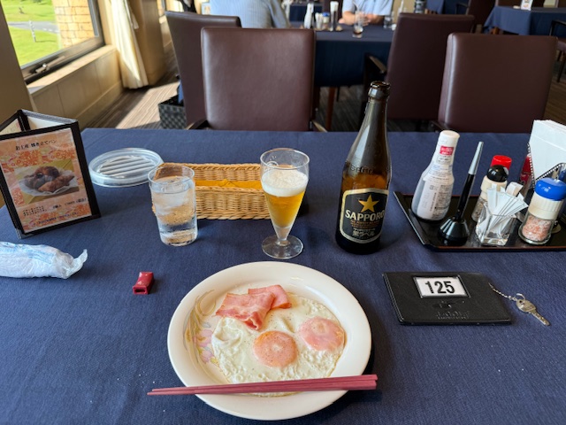 到着してレストランへ。ハムエッグを食します。メニューも豊富でなかなかグッド。また、氷のリクエストにもサクッと応えてくれてナイスです。