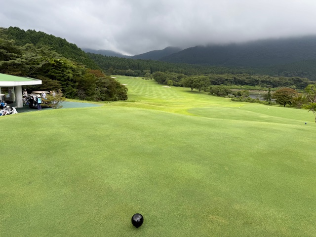 で、スタート。アウトから。ティは黒です。私の飛距離だと難しいけど頑張ります。