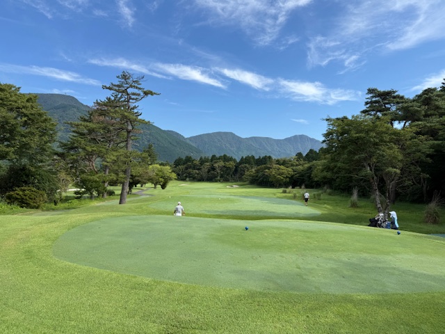 12番ロングは、3打目4打目がショボくボギー。見事な3オンからS.Iさんが残念パー。