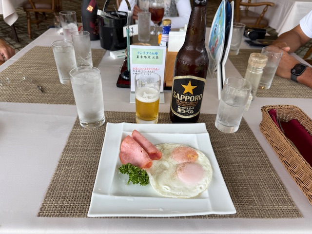 6時40分過ぎに受付し、2階レストランへ。ハムエッグをいただきながら談笑会。レストランスタッフの対応がナイス!
