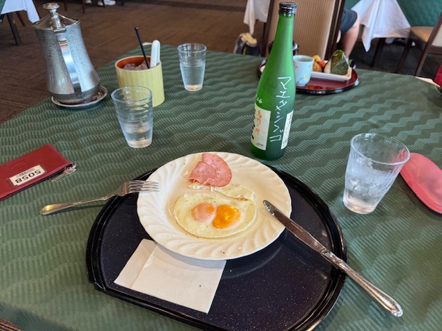 朝のメニューにおにぎりセットがあるんですが、これが500円!素晴らしい!鶴舞ナイスだぜ!で、これとハムエッグを食す