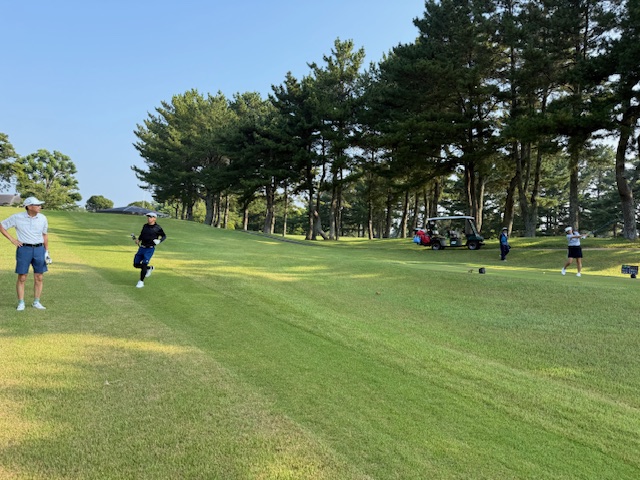 18番375yミドルは、ドライバーはショボ。8アイアンでセカンドがなんとシャンクで隣へ。なんとか4オンでボギー。見事な2オンから無難にパー。であっくんがナイスパー。また、見事なバンカーショットからナイスパターでみーさんもパー。