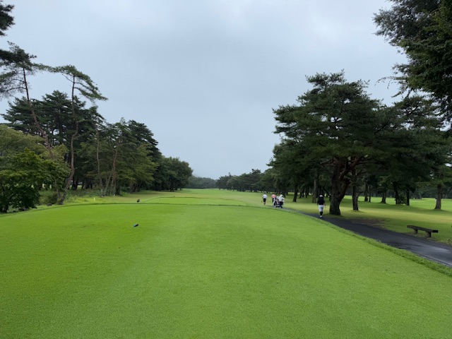 3番ショートは、6アイアンで打つも左奥へ。寄らず入らず。見事な1オンから縁のA.Tさんが無難にパー。