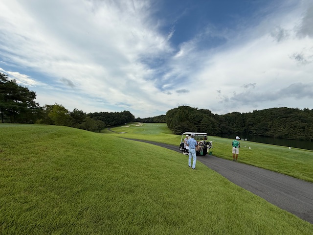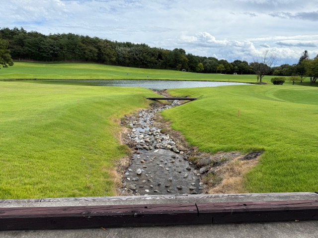 1番415yミドルは、ドライバー、6アイアンがどダフリ。3打目も乗らず。ダボ。ガクッ。見事な2オンからK.Sさんが無難にパー。