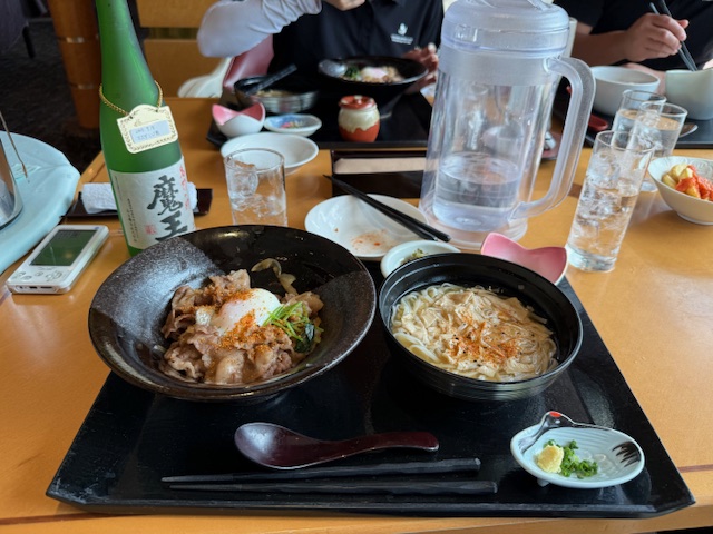ランチは、牛丼と湯葉のうどんセットにする。まずまず。