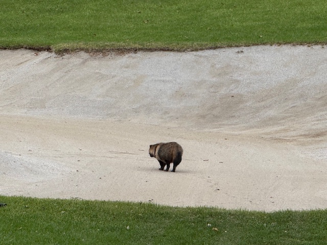9番右ドッグの497yロングは、ドライバーはナイス。3wが竜巻球。3打目が木に当たる。4打目がバンカーイン。ダボ。