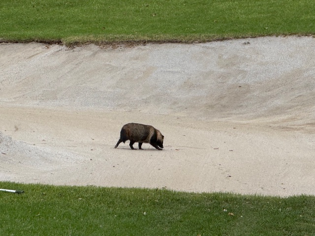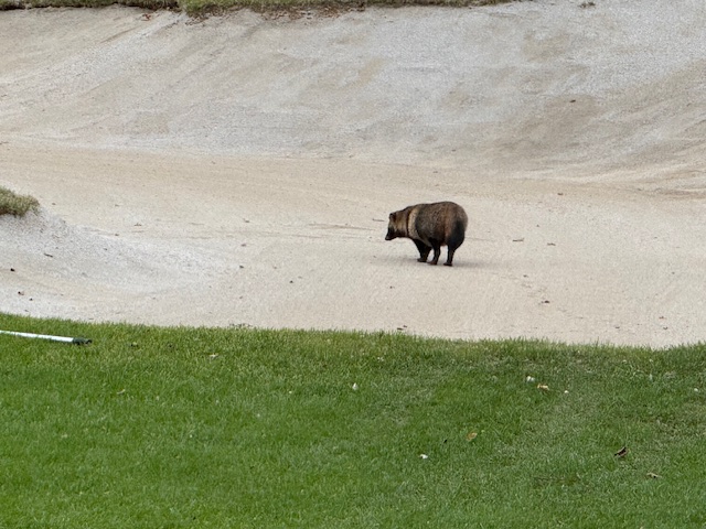 7番397yミドルは、ドライバーは左へ。チョン出し。52度で3オン。ここからまたまた3パンチでダボ。