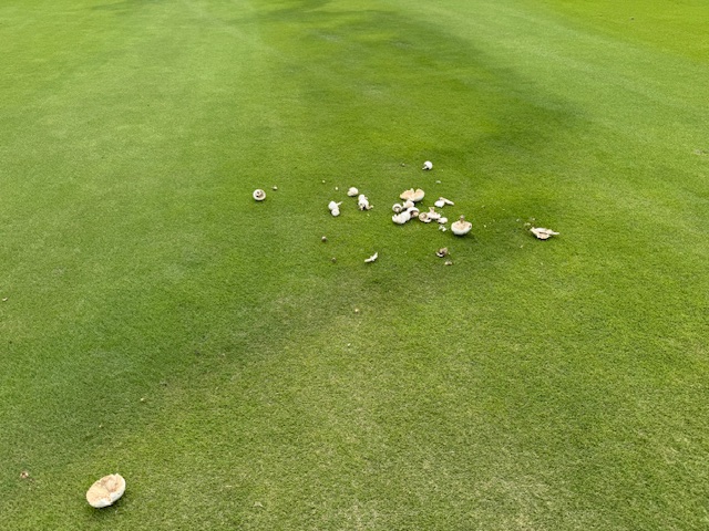 18番476y右ドッグのロングは、ドライバーは狙いよりちょいと右へ。越えたところ。ホッ。8アイアンでなんとか良い位置へ。8アイアンで打つも左奥へ。ここからのアプがナイスでスルスルとカップイン。バーディフィニッシュ。今日は1番と18番がバーディでした。