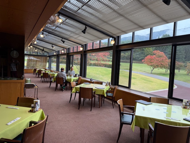 穂高の感想・・・・初めて来ましたが、素晴らしいレイアウトです。ジョー・アーネスト・クレイン氏による設計コースですが、感動しました!ストレートなホールが多い中、ちょっとした右左のドッグレッグホールがアクセントを高めています。で、スタッフの方々の応対が素晴らしいね。これも感動しました。で、料理が旨い。私は一種類しか食していませんが、どれも美味しそうだったし、実際、美味しかったとのこと。で、温泉だしね。茶店は有人だし。じっくり今度は来たいね。今日は片山津グループで来ましたが、レシプロ万歳でした。