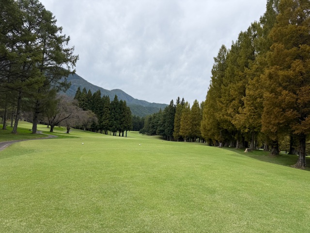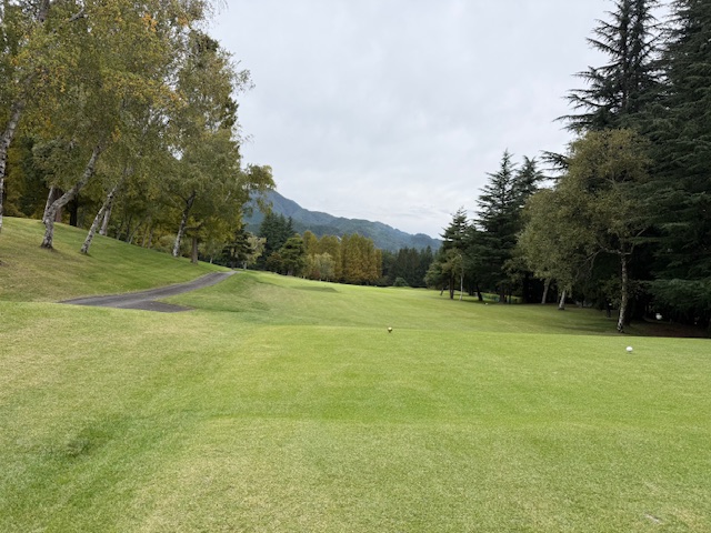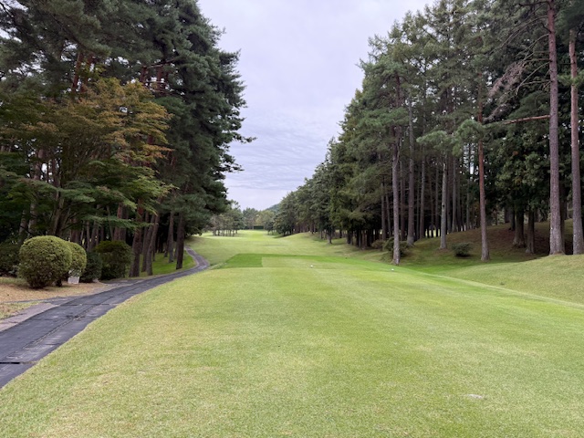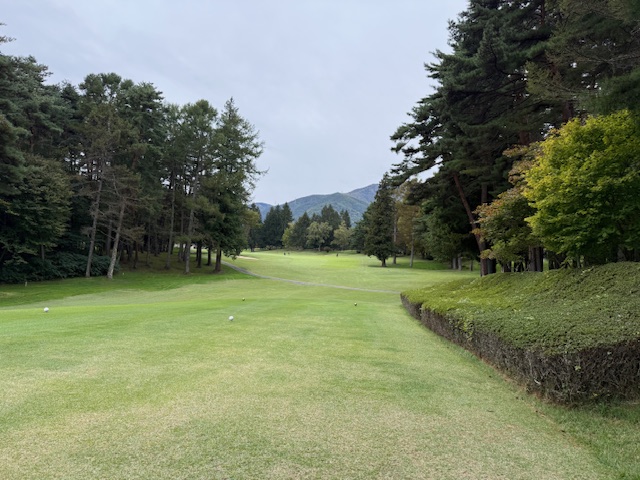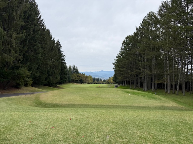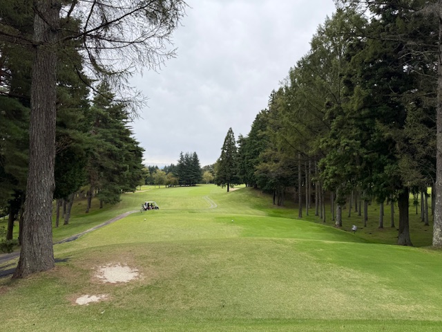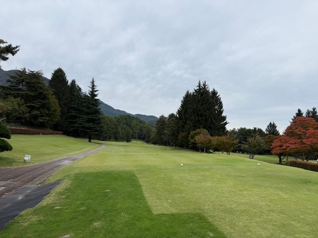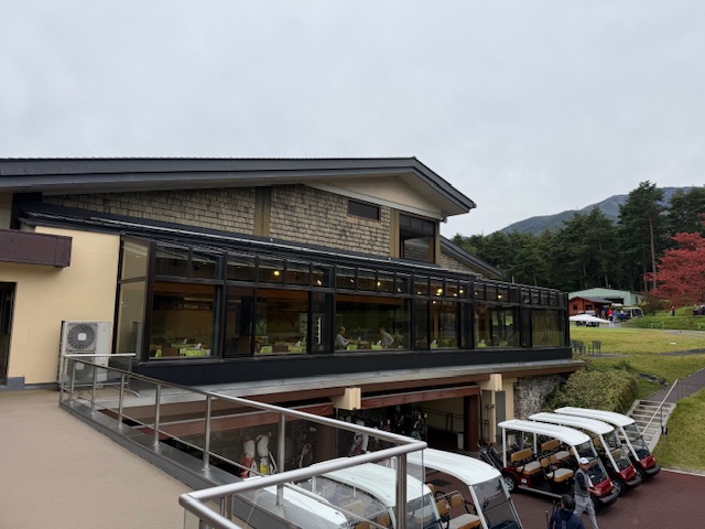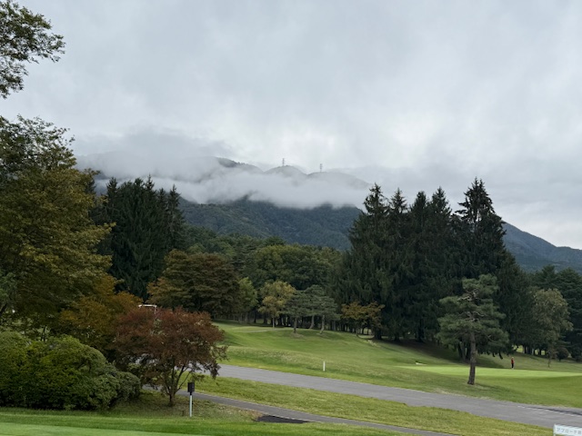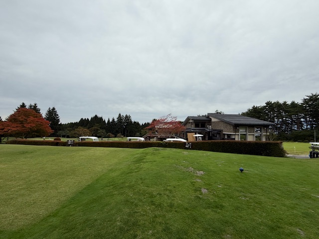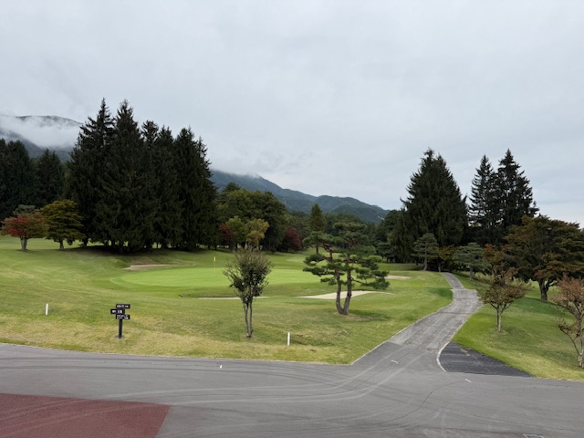 かがやきに乗り、長野駅で降りて、レンタカーに乗り、約1時間で穂高カントリークラブに到着。気温は11度でした。