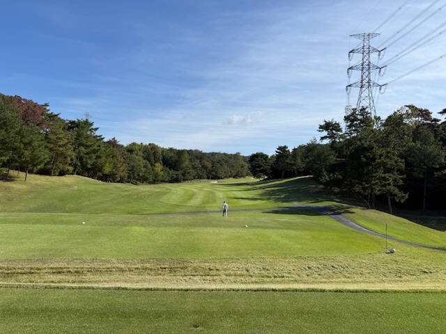 パターを転がして、空いています!と男性キャディのYさんから伺いインから。ブルーティで進行します。