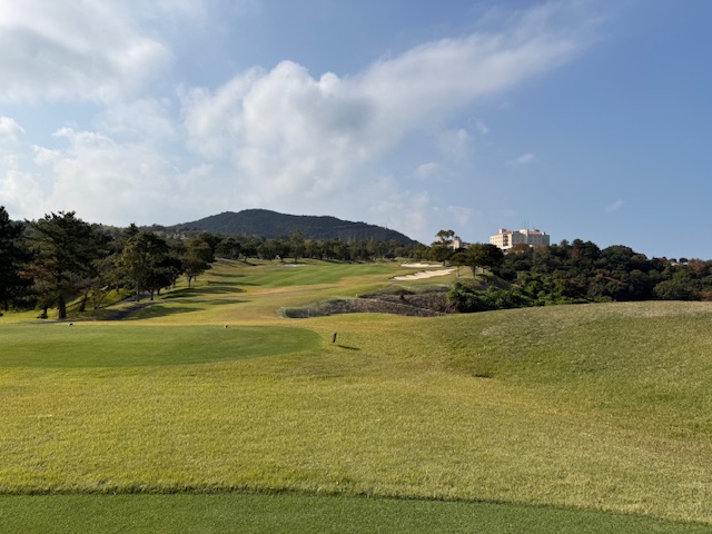 グランディ鳴門の感想・・・・まずは、とにかく暖かい。この2日間、日中は半袖で十分でした。山々と海のコントラストが素晴らしいゴルフ場でした。リゾートトラストのゴルフ場はとても社員教育が良くてホント気持ちが良いです。正直、フェアウェイやラフのメンテナンスは良いとは言えませんが、グリーンがまずまずなので、リゾートゴルフを満喫できます。初めて徳島県でゴルフをしましたが、なかなかグッドでした。