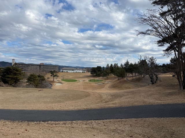 1番ミドルは、ドライバーは右へ。隣からチョン出し。6アイアンで3オン。ボギー。奥からのナイスアプでS.Nさんが銅パーベスト。
