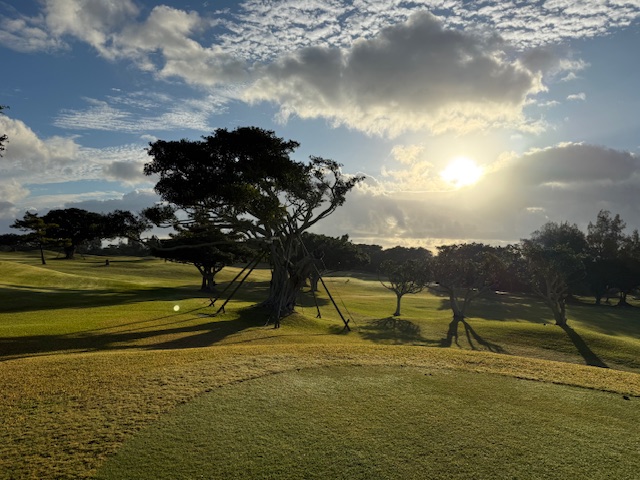 那覇の感想・・・・初日こそ途中の悪天候で10ホールで止めましたが、3日間46ホールは楽しいひと時でした。那覇は距離があり、また、風もありまして、なかなかハードです。また、グリーンの芽を読むのも難しく楽しいゴルフを満喫できます。ここの最大のメリットはラウンドがほぼ4時間で完結することであります。もちろん、今日の我々の組の後ろの組(最後は2ホールは空いていたかと)の後などに付けばそうではないでしょうが。また、12月までは会員同伴なら安価な金額(平日で1.8万、土曜日で2万)で廻れるのもゲストには良いかと。待遇も良いですし。とにかく、花粉がなく、半袖で十分で快適なゴルフが出来るってのが最高でした。