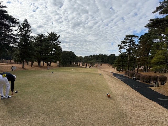 パターを転がしてインから。今日は黒ティで使用はCグリーンです。プロは金ティです。