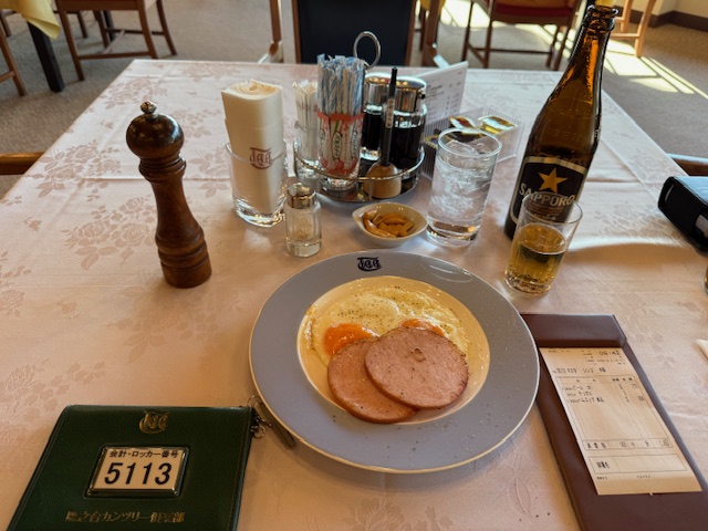 着替えて、レストランへ。いつものように厚切りのハム目玉です。旨い。