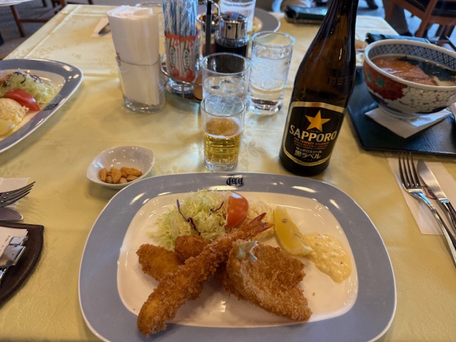 ランチは、ミックスフライを食す。