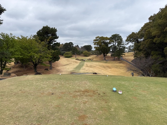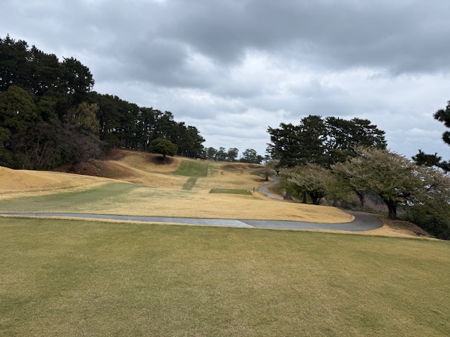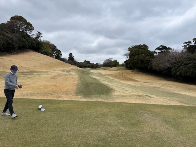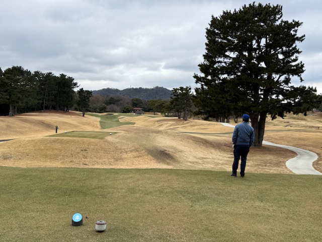 11番568y打ち下ろしロングは、ドライバー、3w、8アイアンで右へ。ナイスアプでパー。同じくナイスアプからS.Mさんもパー。
