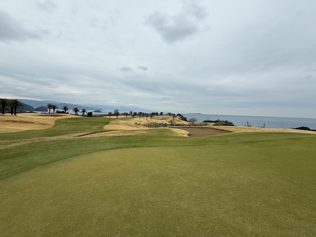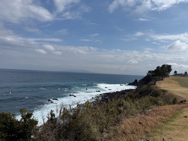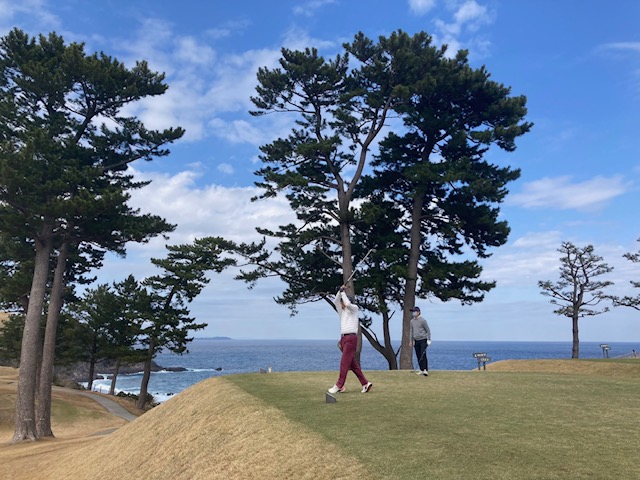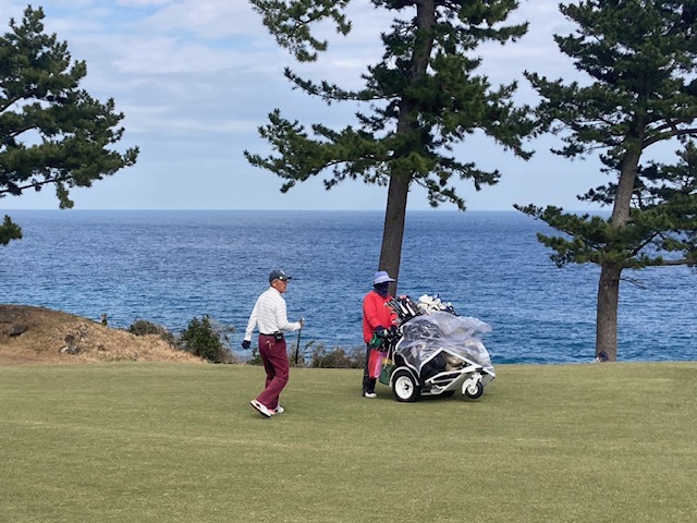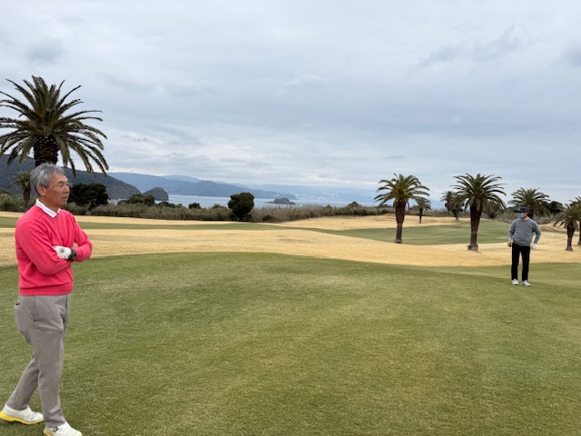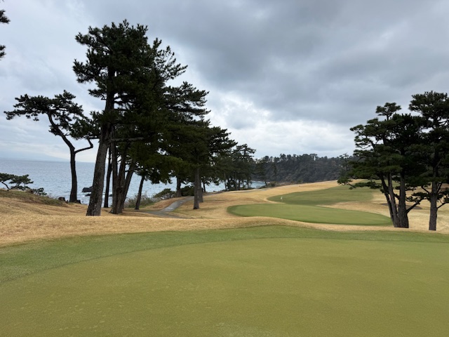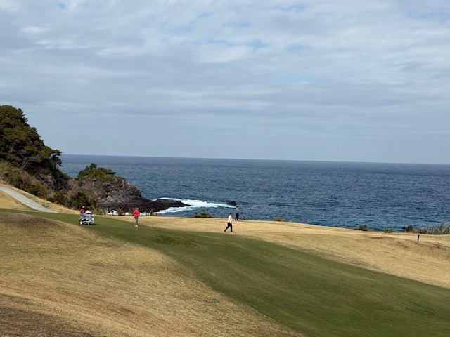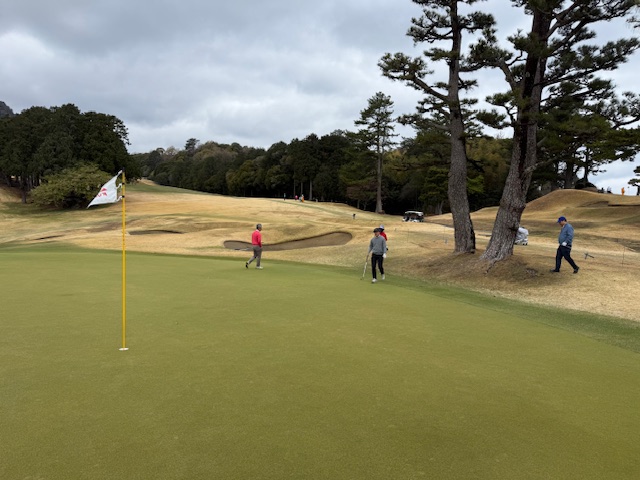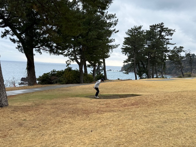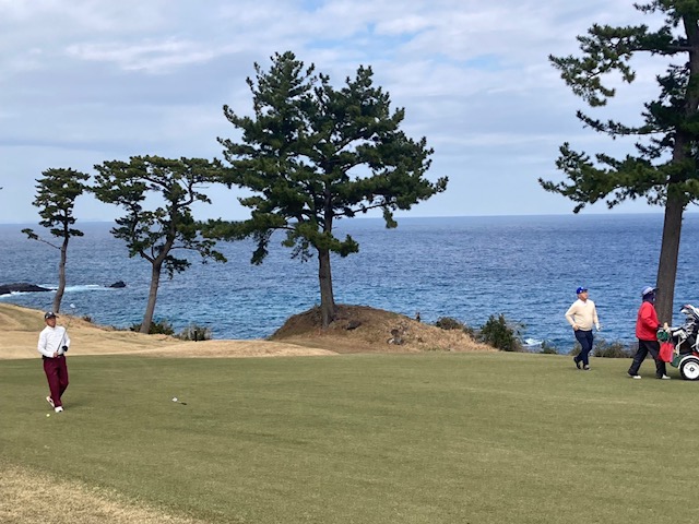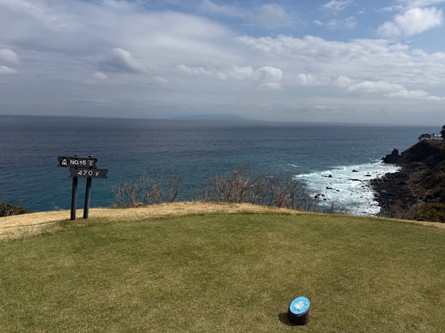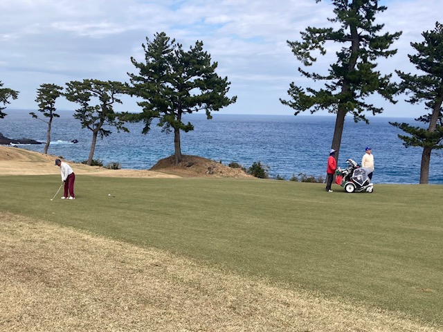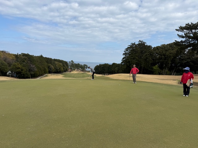 15番470y景色が日本一最高のロングは、ドライバーが右ラフへ。5w、52度で7mに3オン。残念パー。同じく3オンからM.CさんとJ.Oさんも無難にパー。