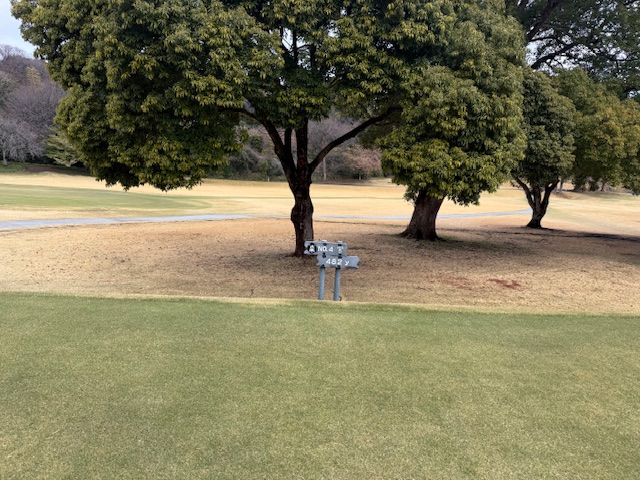 4番468yロングは、ドライバーは竜巻球。木に当たり左へ。6アイアンで打つも木に当たる。なんやかんやで5オン。7となる。
